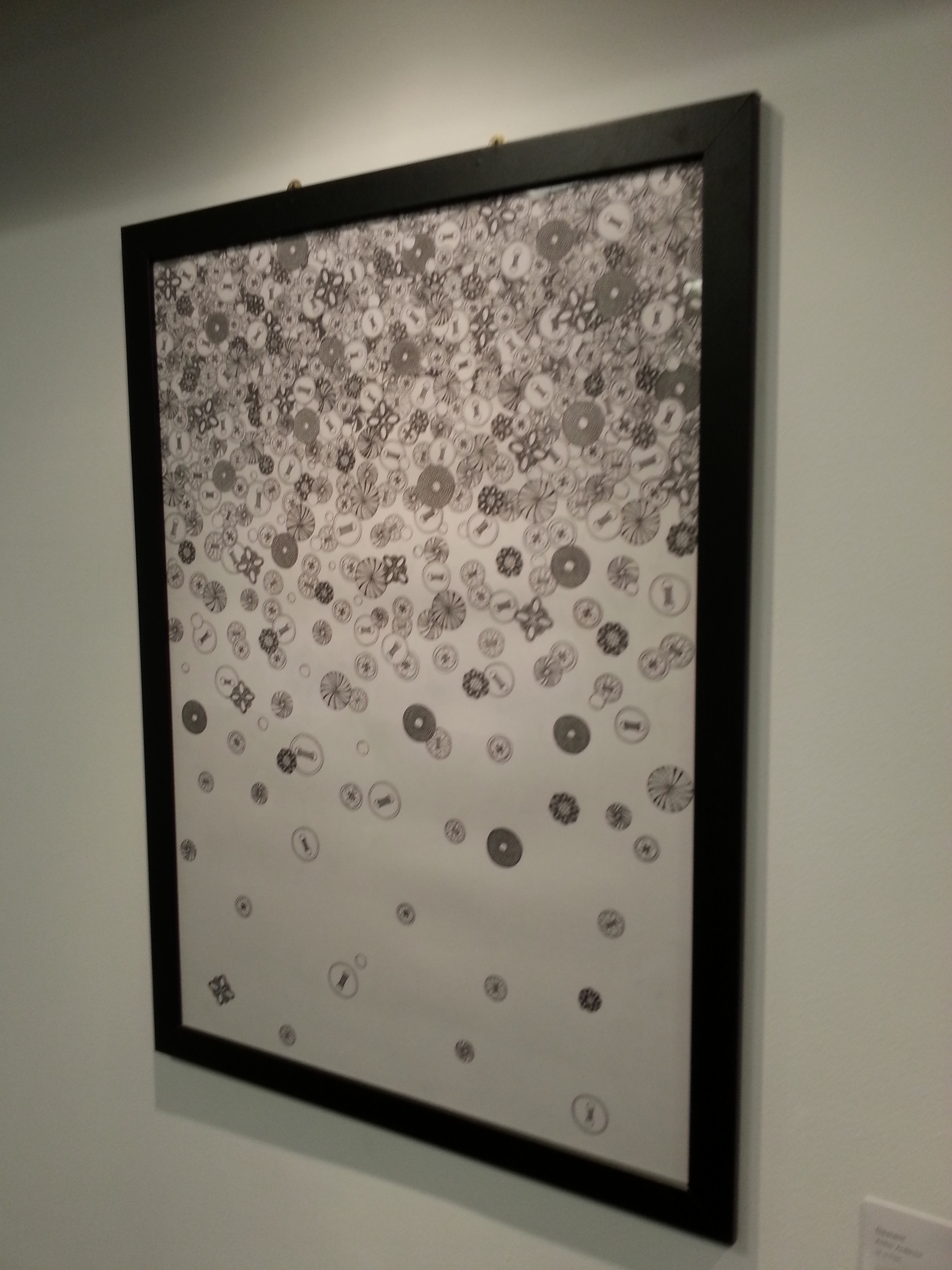 I met Nicola Yuen there and we had a very interesting and wide ranging chat. Nicola has pulled the exhibition of local artists together, with a lot of help from her (actual and metaphorical) friends – within a couple of weeks of this particular space even being identified. So it’s remarkable what has been achieved… with some of the improvised furnishings resonating perfectly well with the transitory nature of the gallery.